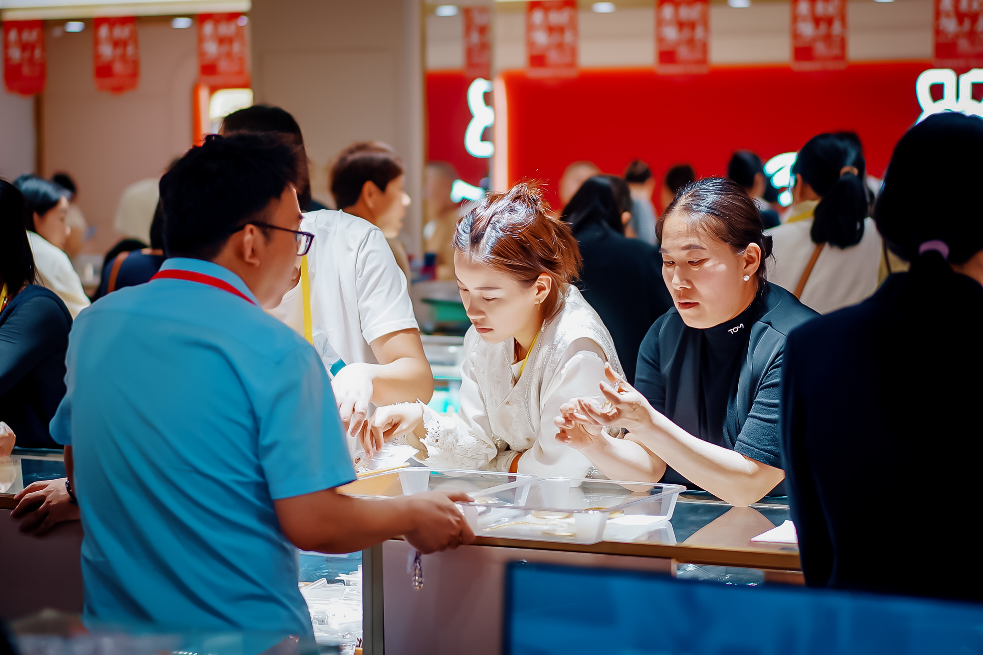 儀式結(jié)束后,嘉賓一行跟隨祥獅實地參觀寶匯鑫珠寶交易中心,現(xiàn)場人聲鼎沸,人潮嚷嚷......商場內(nèi)聚滿了前來的消費者